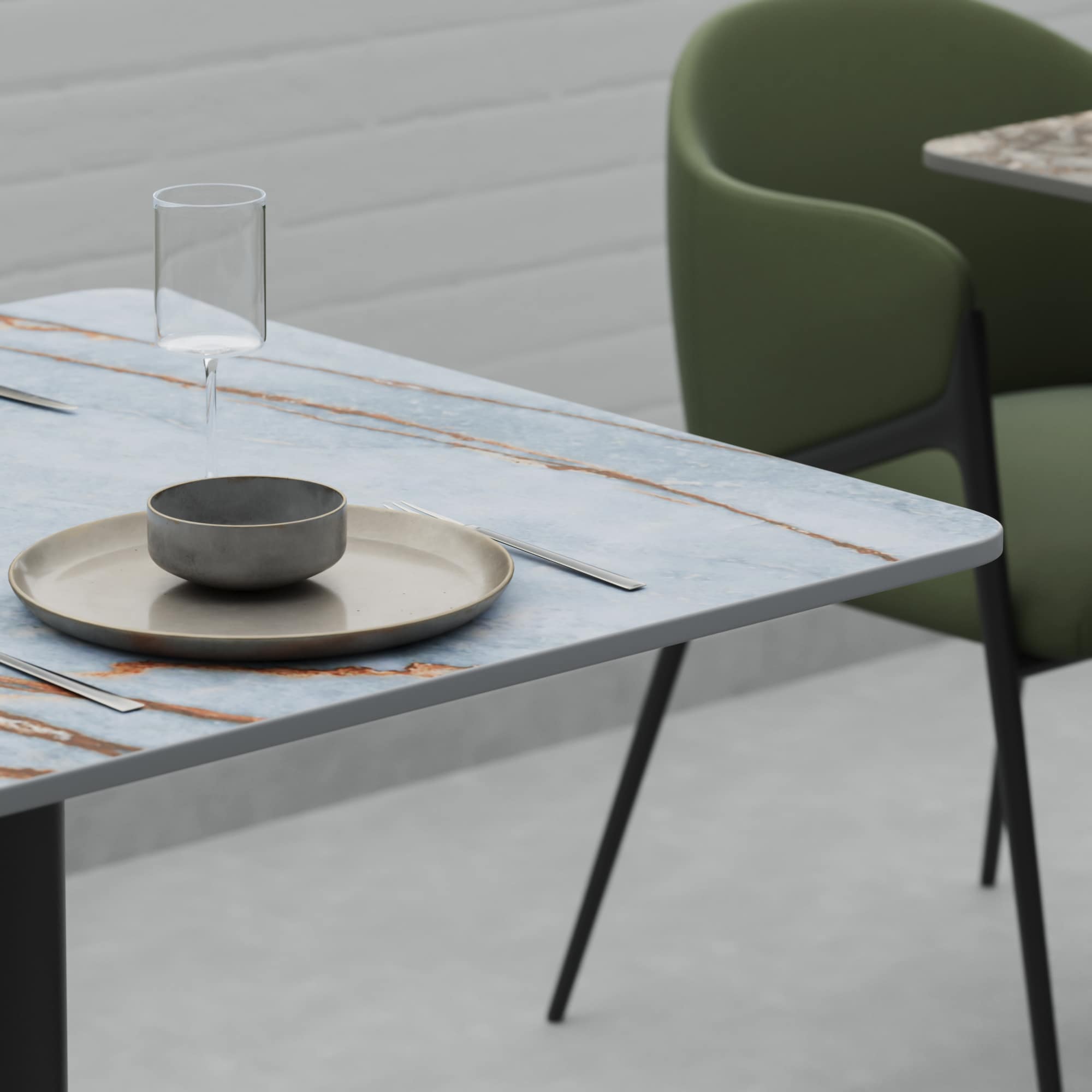 Available from stock in 5 beautiful colours, our Porcelain tops are more resilient to scratches than Marble or Quartz, rating 8 on the MOHS scale. 12mm in thickness, these sleek table tops are heat resistant to over 600°C. The non porous surface means they are extremely hygienic and anti-bacterial, as well as meaning your top is extremely stain resistant. Visually stunning, our Porcelain table tops feature an 18mm MR (moisture resistant) MDF fixing board in black and are suitable for indoor and outdoor use.