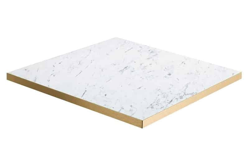 Our high quality luxurious contract laminate, gold edged table tops are perfect for adding a touch of elegance to any restaurant, cafe or bistro. These tops are manufactured using only premium branded laminates which are scratch resistant and heat resistant to 180oC. The ultimate in durability, our laminate range encompasses the most popular sizes to suit any demanding application.