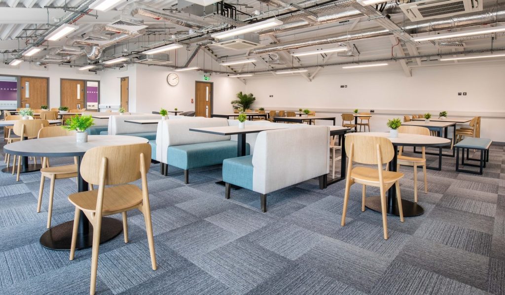 We designed and installed bespoke booth seating, banquettes and study booths for Drayton Manor High School’s new café and first-floor working space, creating a modern, durable and student-friendly environment for dining, study and collaboration.